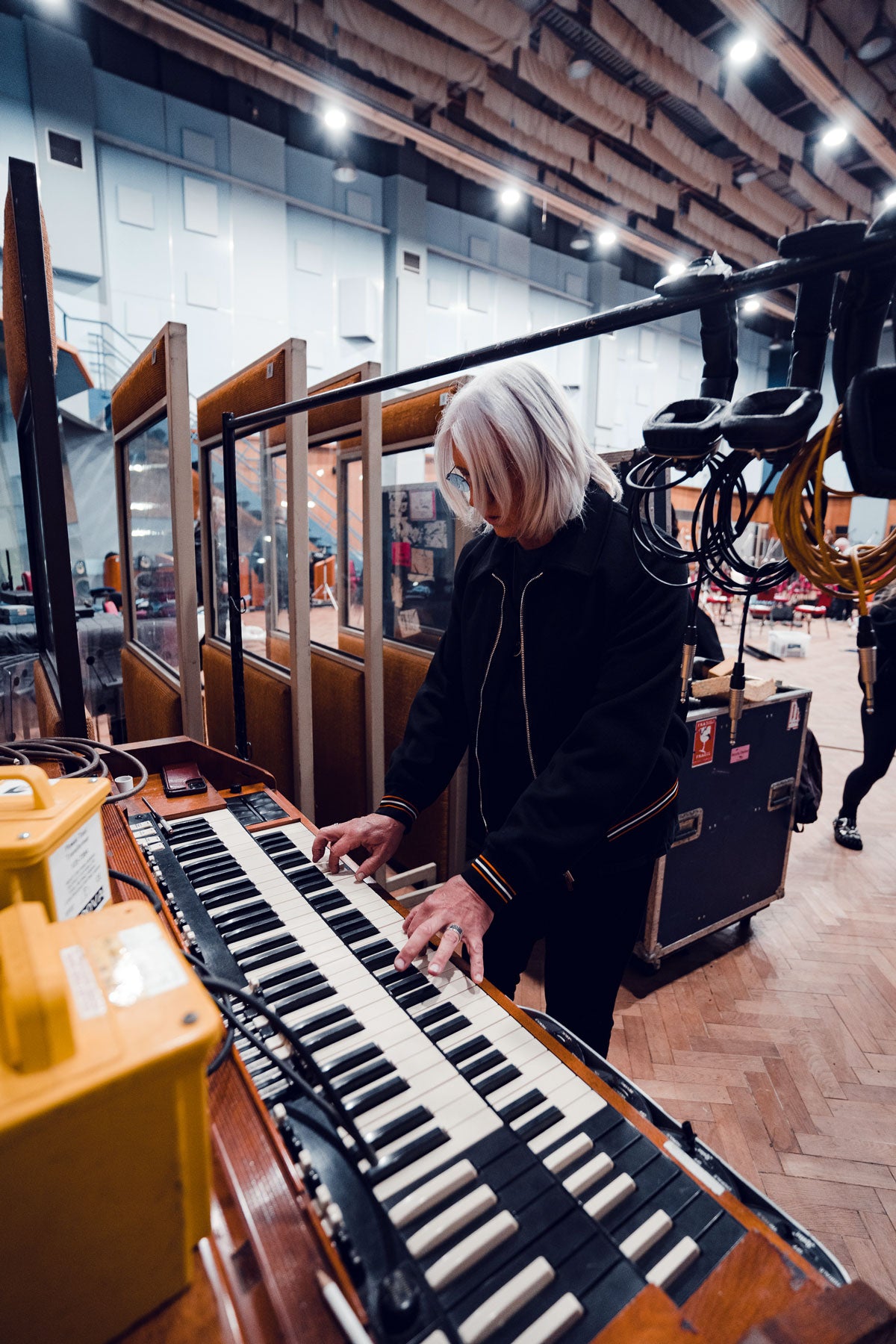 Joe plays Abbey Road's legendary Hammond RT-3 organ, March 2022. According to the studio website, this organ "...features on nearly every Beatles album, used by each respective member at one time or another, as well as by Sir George Martin. Over the years, countless other jazz, rock and pop recordings made at Abbey Road feature this instrument, including Pink Floyd’s The Dark Side of the Moon". Photo: Ryan Sebastyan. From the Collection of Def Leppard.