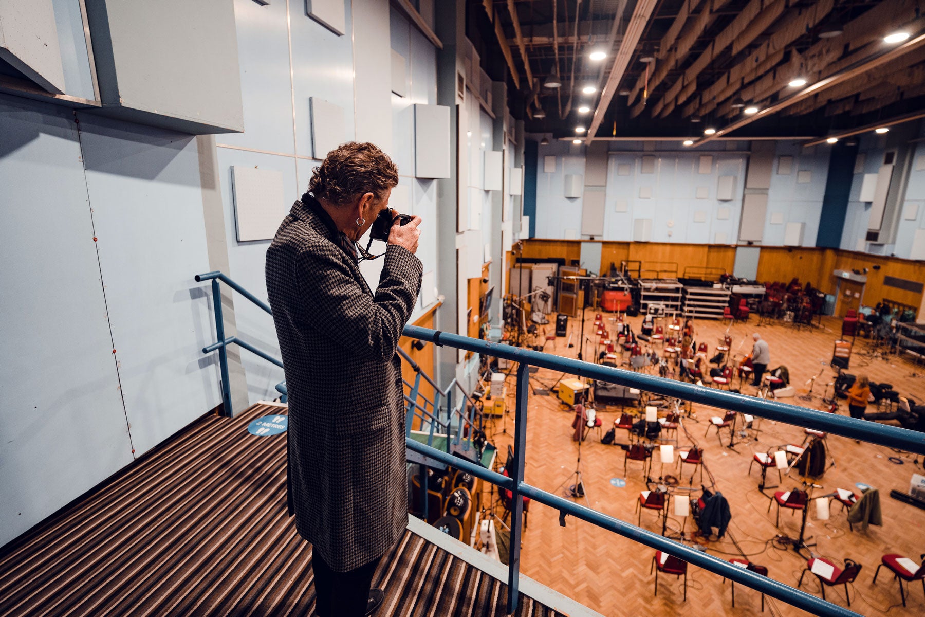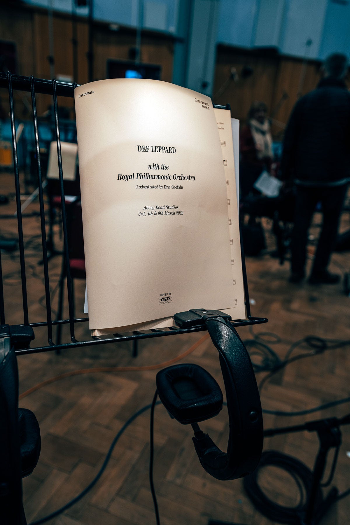 Rick gets a photograph of the Drastic Symphonies recording set-up for the Royal Philharmonic Orchestra, March 2022. Photo: Ryan Sebastyan. From the Collection of Def Leppard.