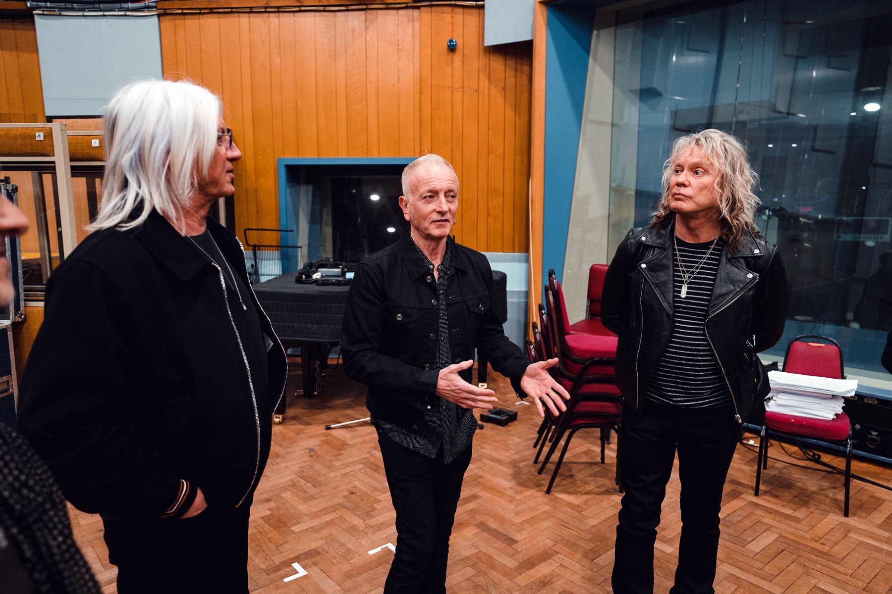The band talks inside Abbey Road's Studio 2, March 2022. Photo: Ryan Sebastyan. From the Collection of Def Leppard.