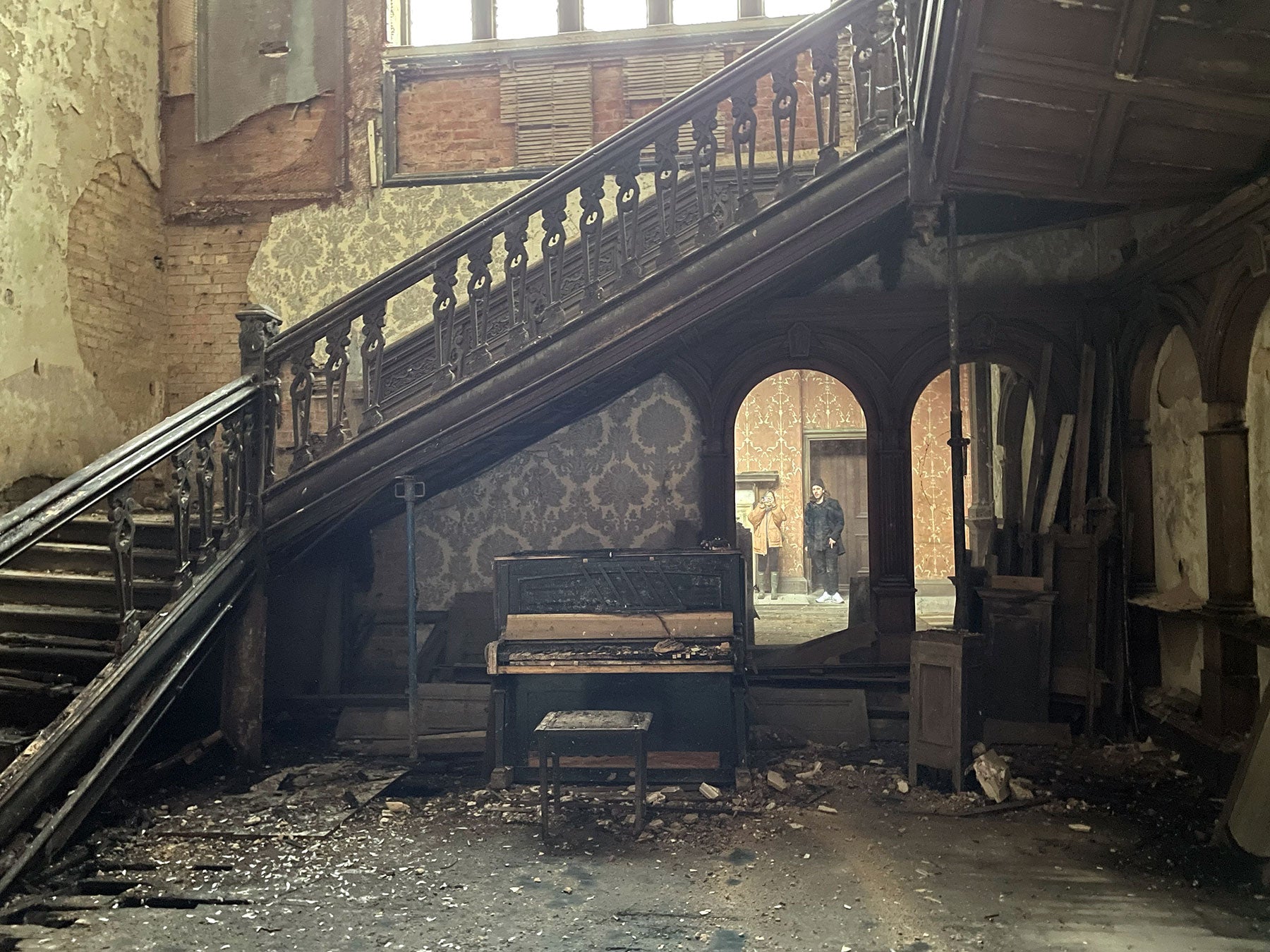 Drastic Symphonies album art photography and videography took place at a dilapidated manor house. Ellen Wright-Martin found the location after some early inspiration from Phil. "After chats with Phil, he showed me a wonderful photo of a derelict hall with a piano inside. This was the springboard I used to track down a location. What we found was a wonderful abandoned Manor House in the depths of Yorkshire." Courtesy of Ellen Wright-Martin.