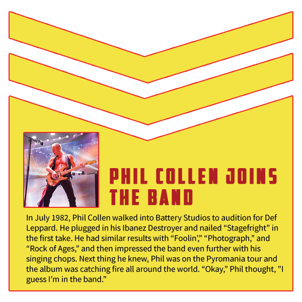 PolyGram Records promotional photo in support of Pyromania, circa 1982. This marks one of Phil's first official photo shoots with the band. From the Collection of Joe Elliott.