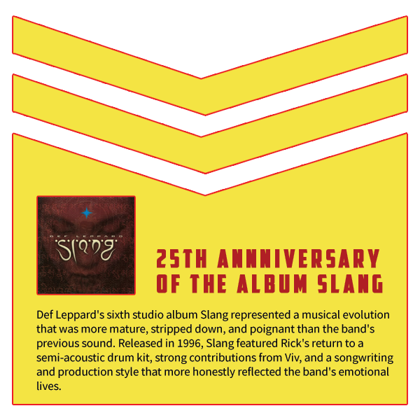 This English poster catches the success of the Slang Tour in November 1996 by featuring shows added at Sheffield Arena, NEC Arena in Birmingham, and Wembley Arena. Special guests for this leg were English rockers Terrorvision. From the Collection of Def Leppard.
