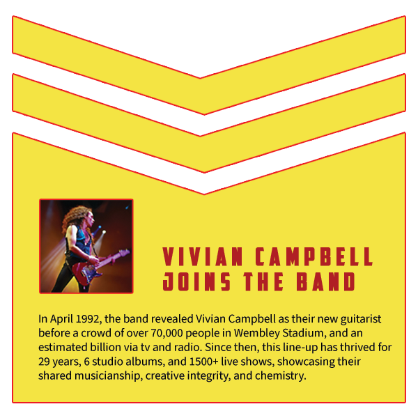 With the recording of Adrenalize complete, Def Leppard was ready to become a 5-piece again. Viv was also in a state of transition and ready to take Joe's call.