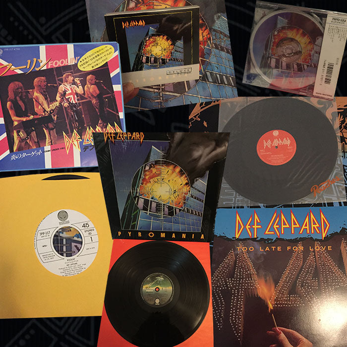• Pyromania-Deluxe Edition-B001302802 • Pyromania-Holland-Vertigo 6359-119 • Too Late For Love-UK import-VERX 8 • Foolin-Japan Import-7PP 117 • Pyromania-Japan Import-28PD 523