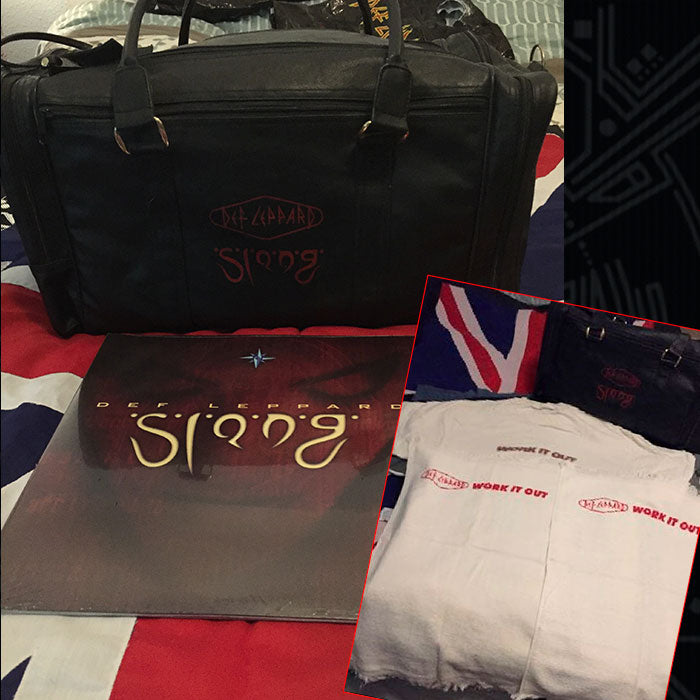 All fans of a group grow with the group. Not just by age but intellectually. Most bands experiment with sound and Def Leppard was no exception. Although I was at JB&H to get the new release it took me a while to get used to the sound as it was so drastically different. The CD had to be in constant rotation before I could get used to it. During this time I will venture to parts unknown - different avenues in the collecting experience by use of a magazine GoldMine -which literally is a Gold Mine - I will become acquainted with Music Machine an outfit based in N. Carolina, I believe, but I know the owner traveled all over just looking for “cool stuff”. I had purchased a few items and he knew I was a big fan and would often call to give me first dibs on something and the duffel bag seemed to be a worthwhile catch. The bag was a promo for the song “Work it Out” and came with 2 towels and a shirt.