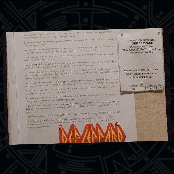 In 2018 I decided to surprise Bryce with a birthday trip to Las Vegas with the sole purpose of seeing Def Leppard along with celebrating our 15 year anniversary (anniversary Def Leppard concert!) I wanted a unique way to tell him so I decided what better way to do so than to make a birthday card and letter using every Def Leppard song title. A one of a kind master piece that holds special meaning to both of us.