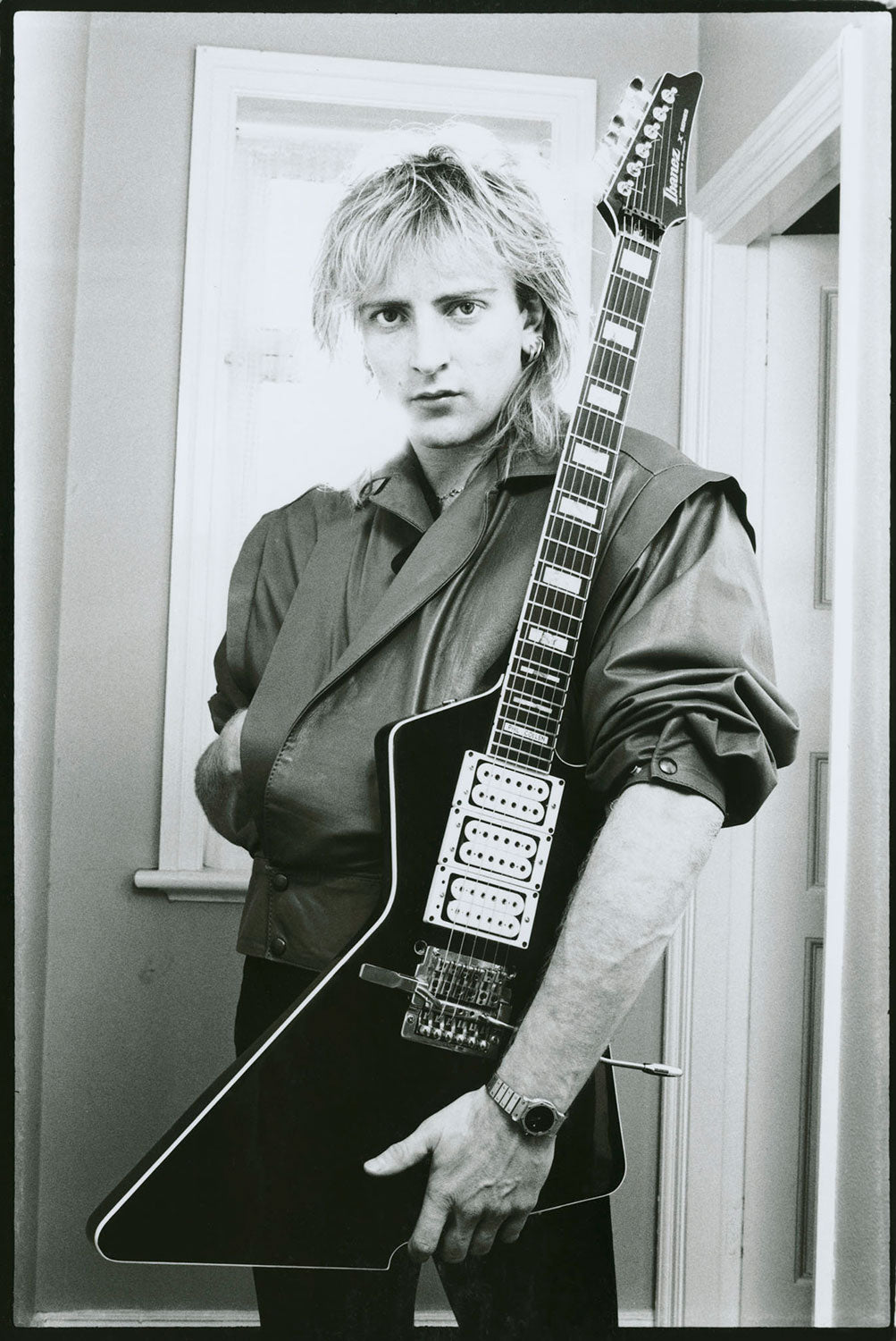 Phil with his original Ibanez Destroyer, 1983. From the Collection of Def Leppard.