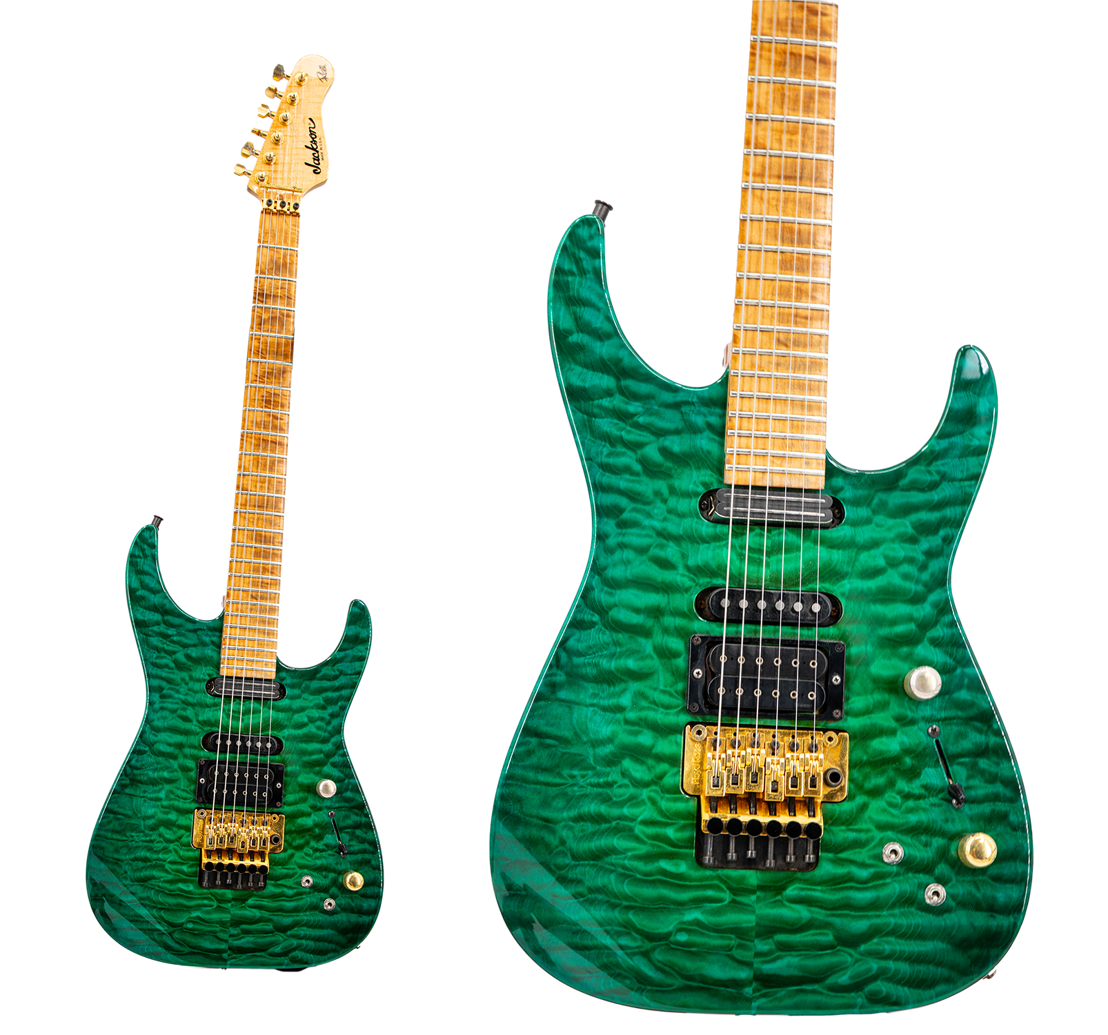 Phil got this Jackson PC1, "Kermit," during the Slang Tour in 1996. He used it as his main guitar for recording and touring for several years. From the Collection of Phil Collen.