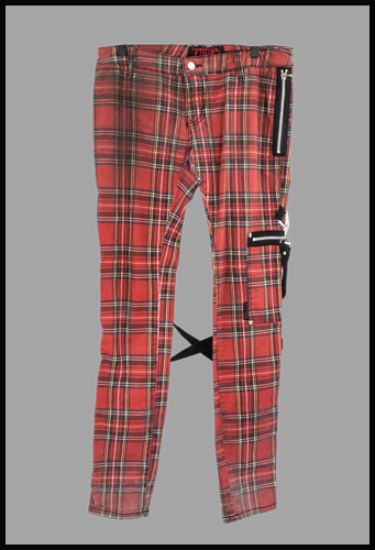 Phil's red plaid pants worn on the 2018 Def Leppard World Tour. From the Collection of Phil Collen.