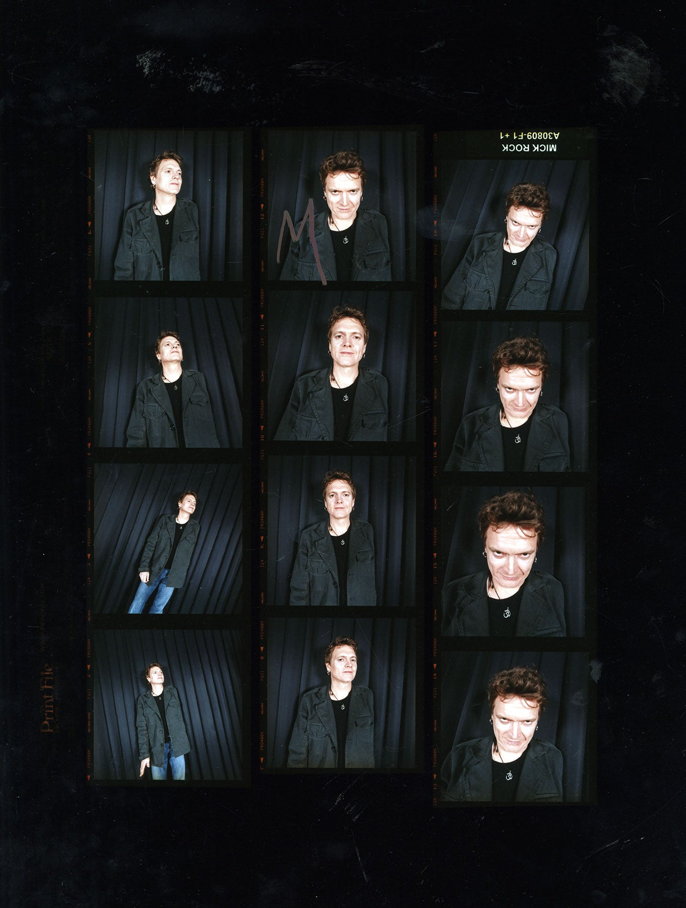 Contact sheet containing outtakes of Rick sitting for a portrait session, 2006. Photo: Mick Rock. From the Collection of Def Leppard.