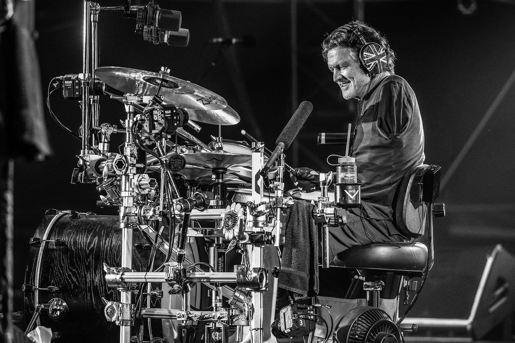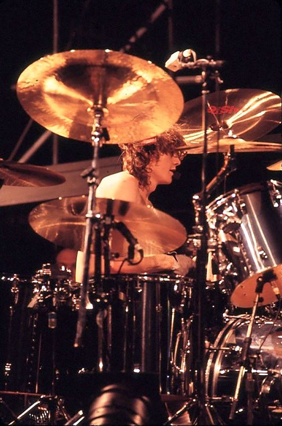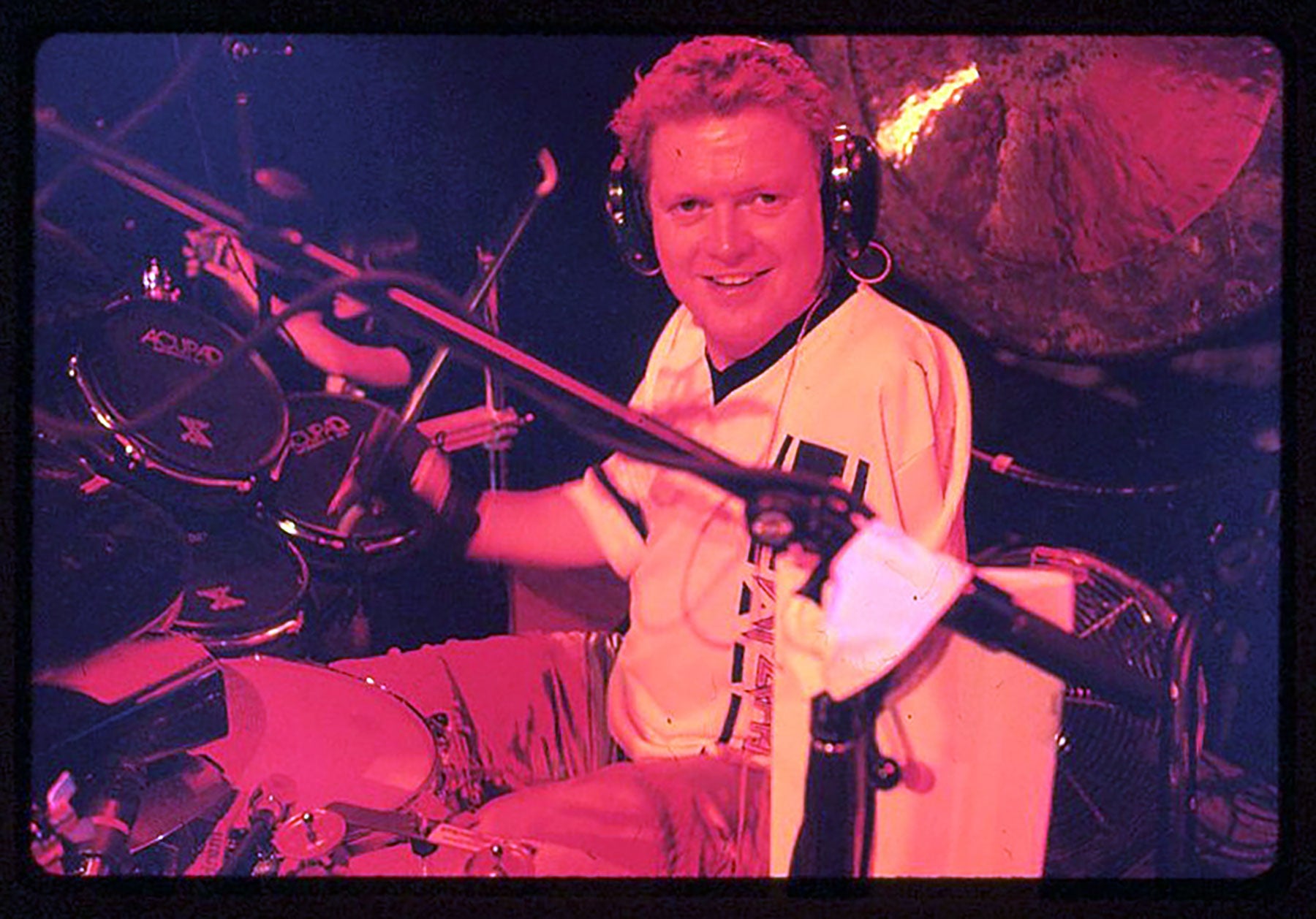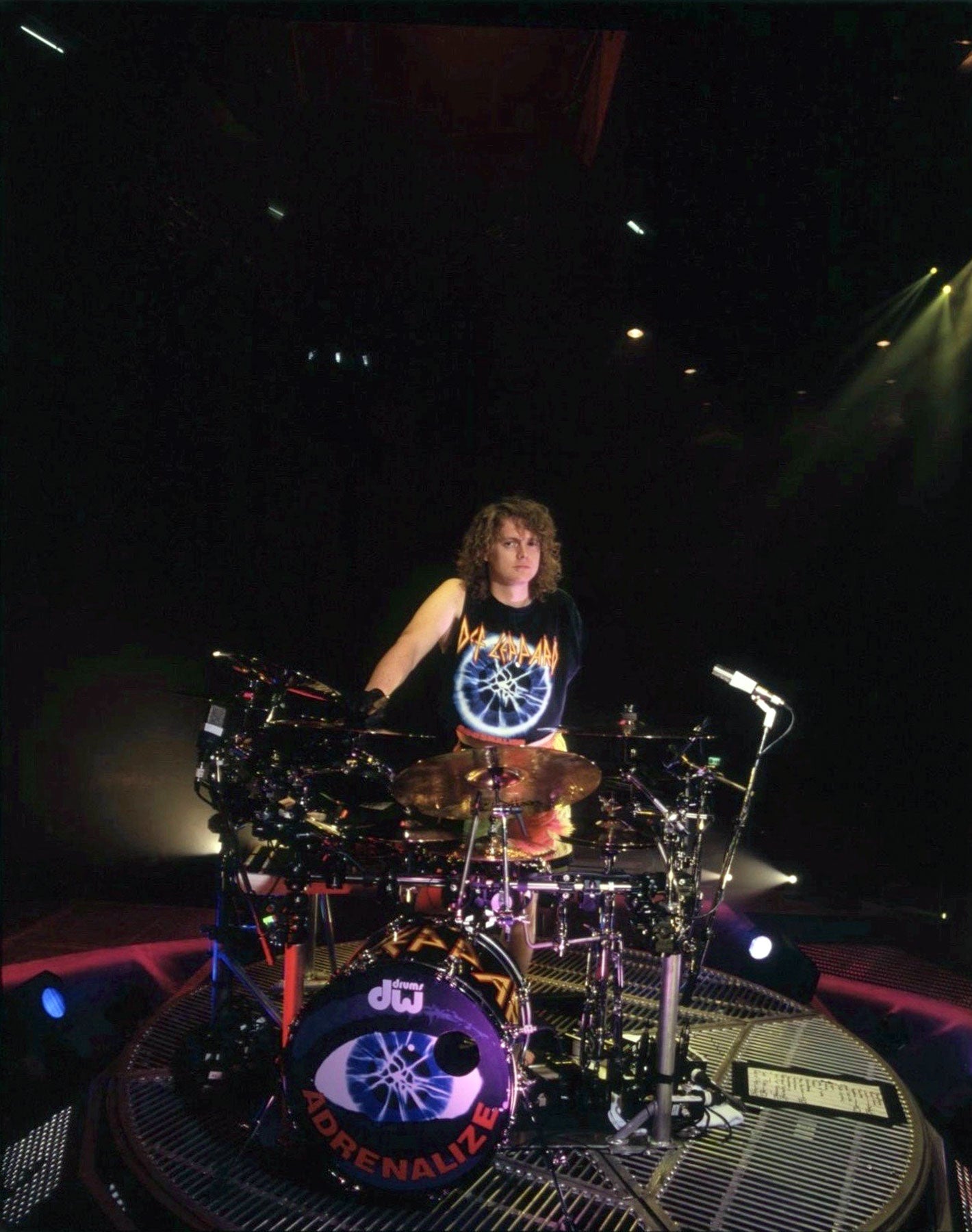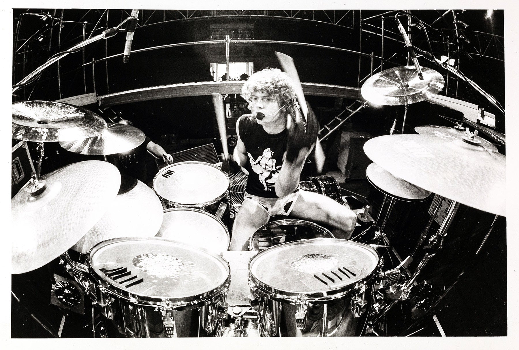 Rick keeps the beat on the Euphoria Tour, circa 1999. Photo: Ross Halfin. From the Collection of Def Leppard.