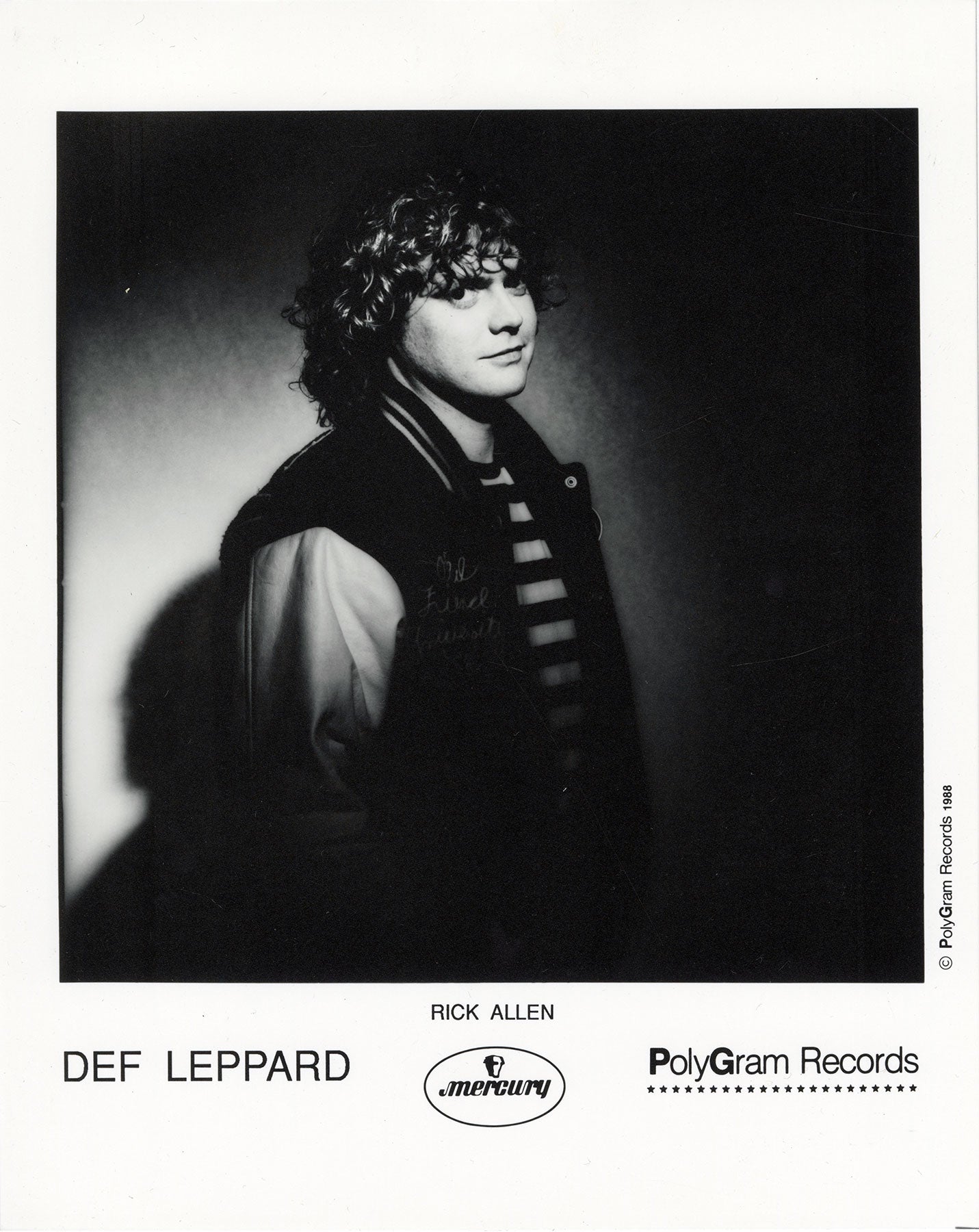 PolyGram Records promotional portrait of Rick in support of the Hysteria Tour, 1988. From the Collection of Def Leppard.