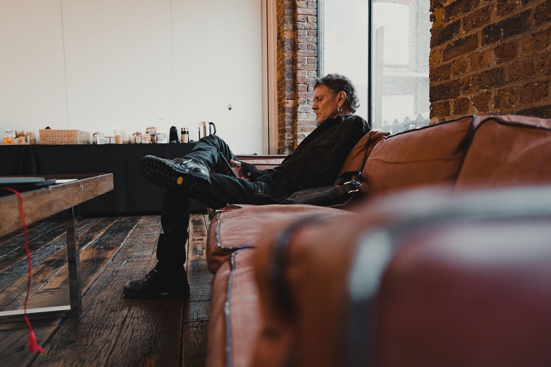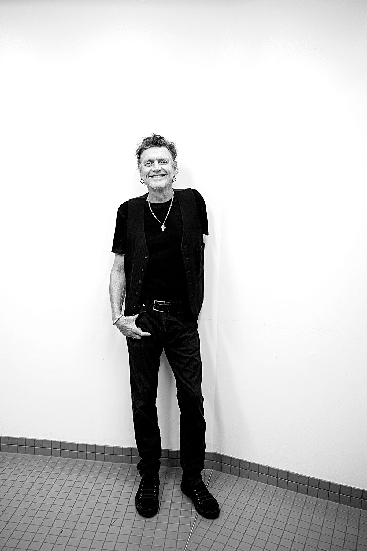 Rick waits for a Diamond Star Halos photo shoot. This would be the band's first time working with famed Dutch photographer Anton Corbijn. Photo: Ryan Sebastyan. From the Collection of Def Leppard.