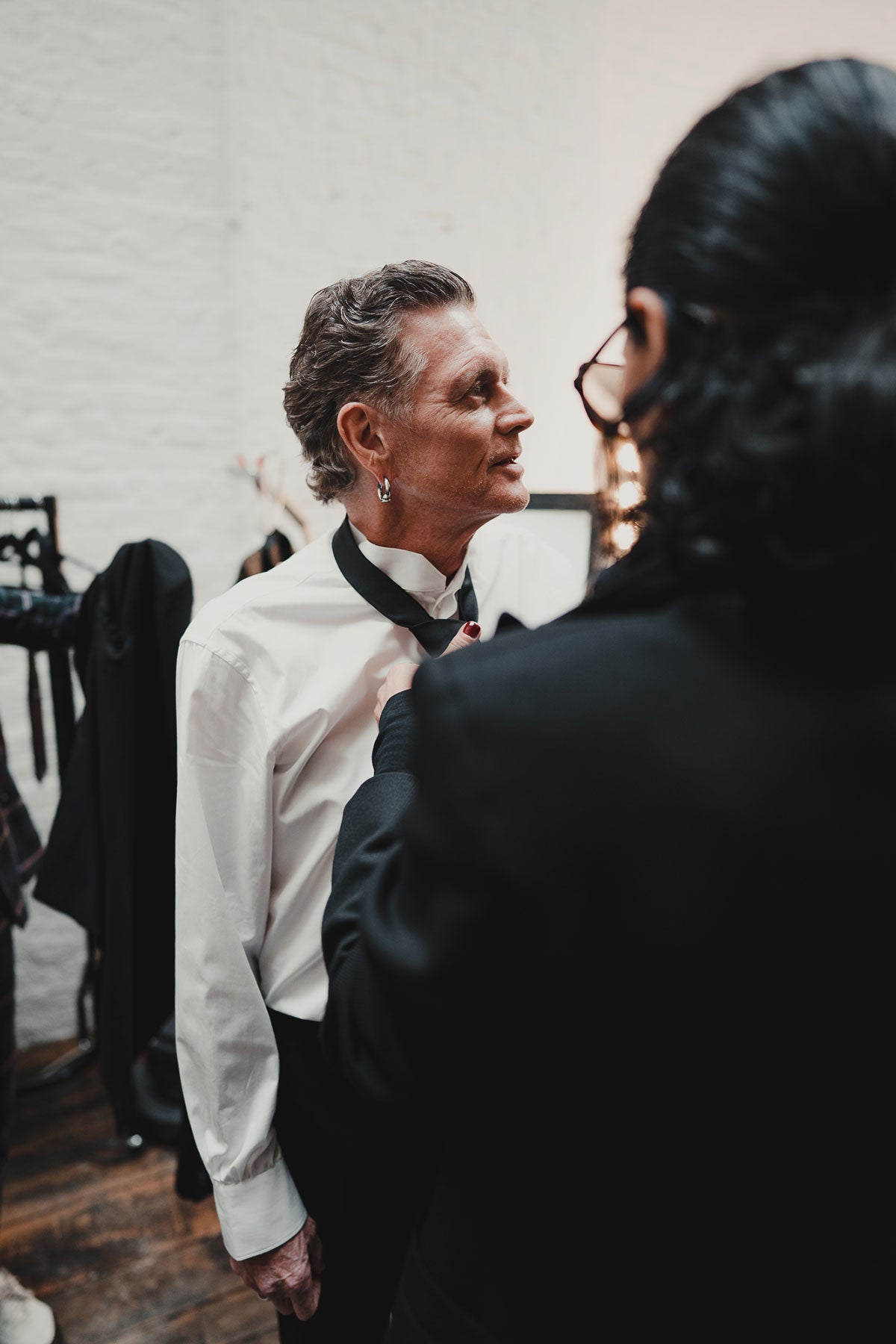 Rick works with stylist Maryam Malakpour in preparation for a photo shoot with Anton Corbijn. Photo: Ryan Sebastyan. From the Collection of Def Leppard.