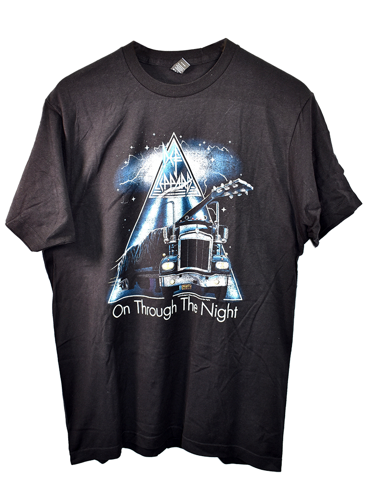 Keep on truckin' with this tribute t-shirt to the great On Through The Night Def Leppard debut. Black t-shirt with blue and white On Through the Night artwork. From the collection of Def Leppard.