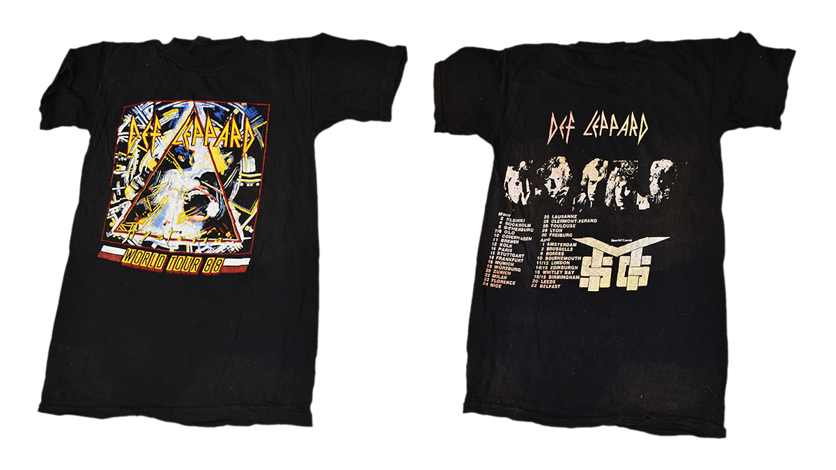 These shirts mark special moments in time from when we were young lads, rocking on through to our lives as Leppards today. We found a lot of treasure as we dug through our closets and drawers, some you have seen some you haven’t. We are going to put all the cool T-shirts we find in here as we continue the hunt through our personal collections. Which ones are your favorites? Add them to your wishlist. In the name of love, put that t-shirt on me.