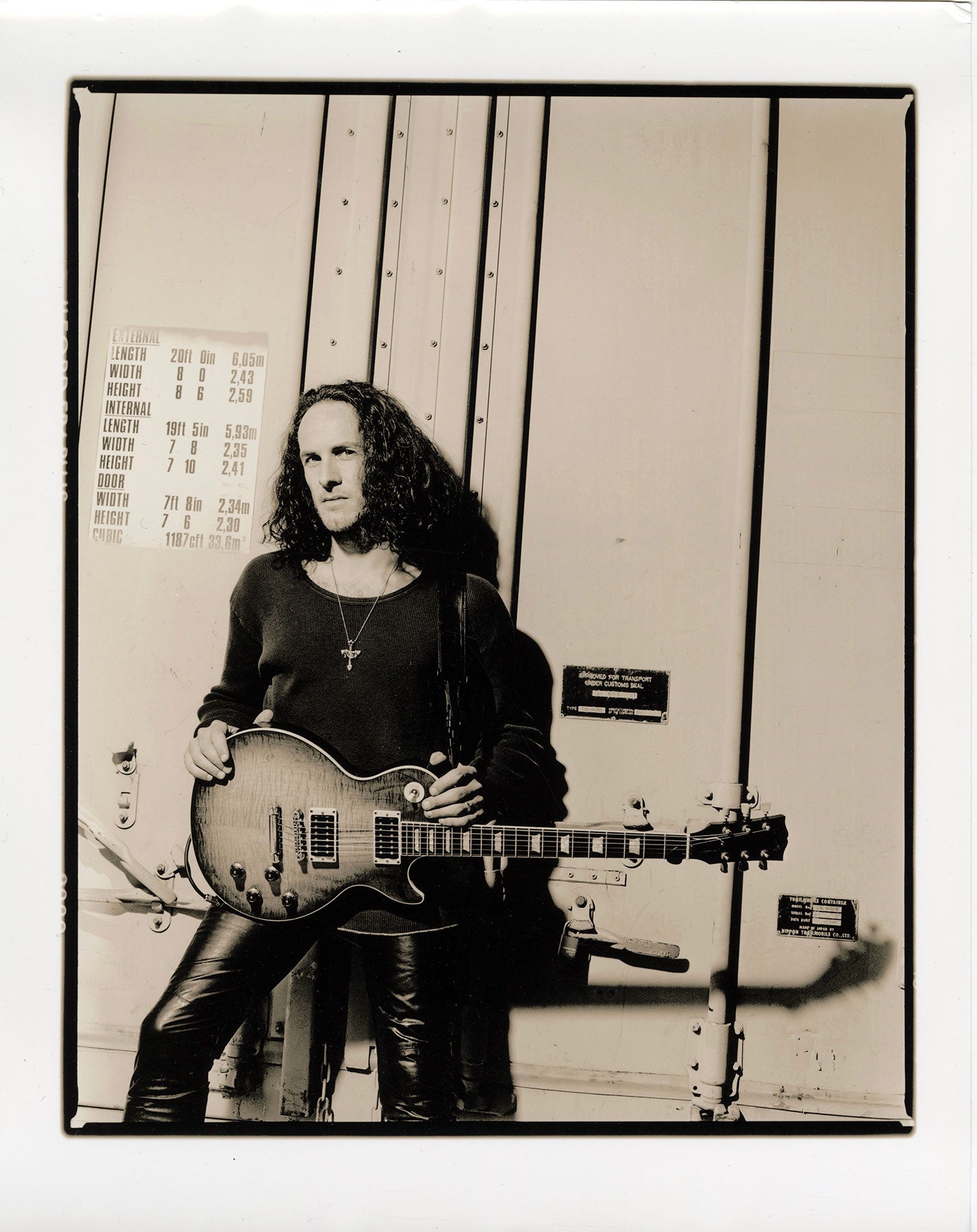 Viv holds a Gibson Les Paul in this promotional photo for X, 2002. Photo: Clive Arrowsmith. From the Collection of Def Leppard.
