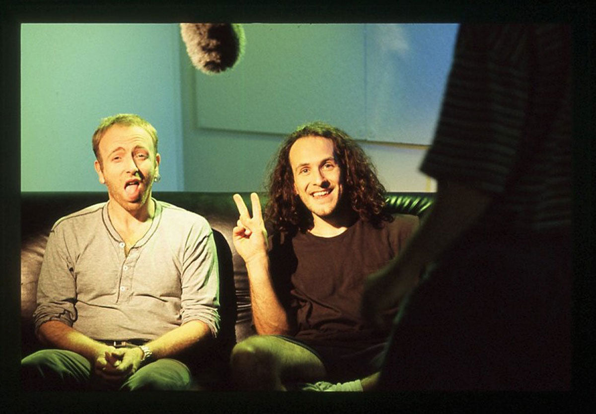 Phil and Viv have a bit of fun before an interview in support of Slang, circa 1996. Photo: Ross Halfin. From the Collection of Def Leppard.
