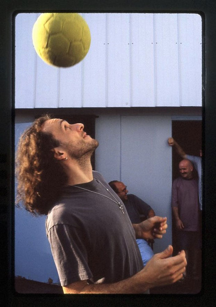 Vivian gets a quick football break in. Photo: Ross Halfin. From the Collection of Def Leppard.