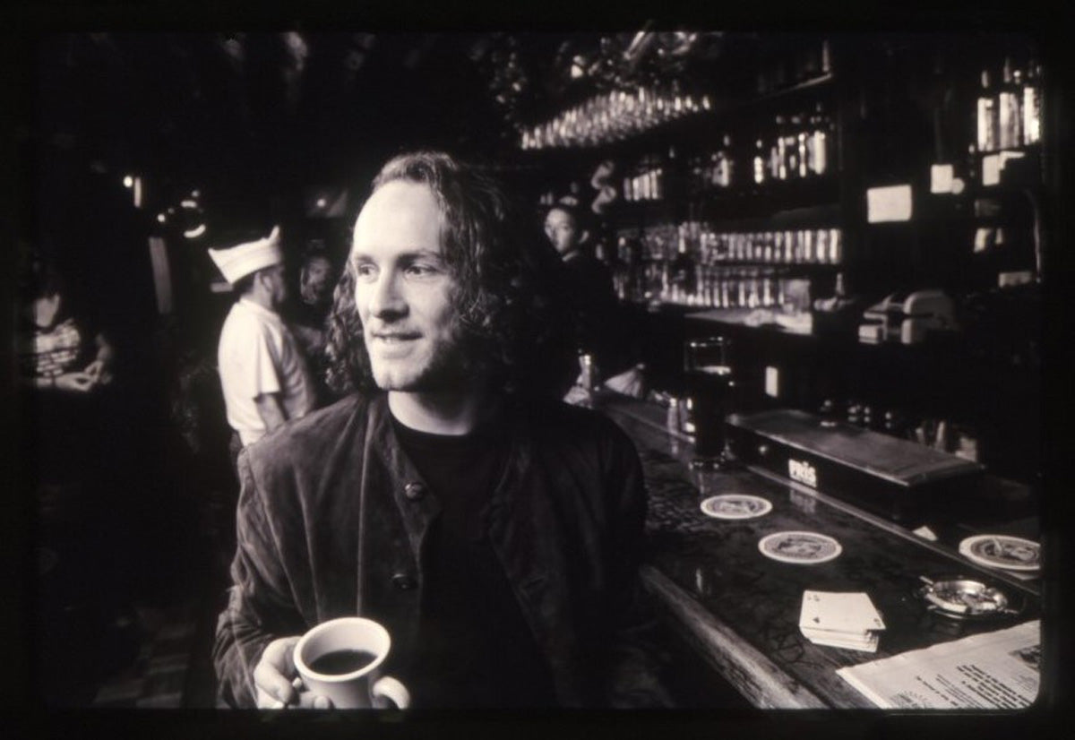 Viv enjoys a cup of coffee at a diner bar in this 1995 portrait. Photo: Cynthia Levine. From the Collection of Def Leppard.