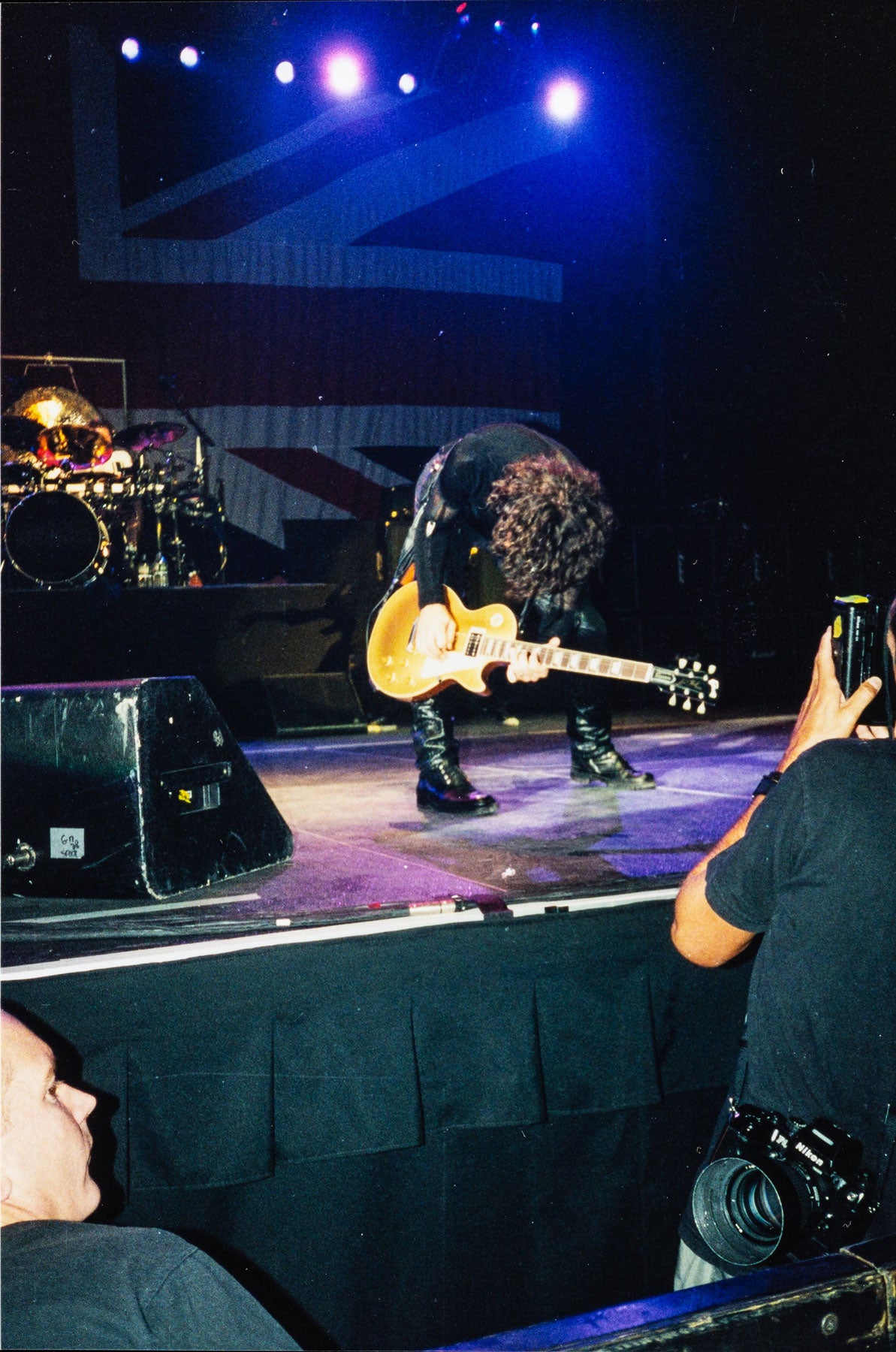 Viv captured mid-solo on the Euphoria Tour, Colorado State Fair Events Center, Pueblo, Colorado, 6 September 1999. From the Collection of Joe Elliott.