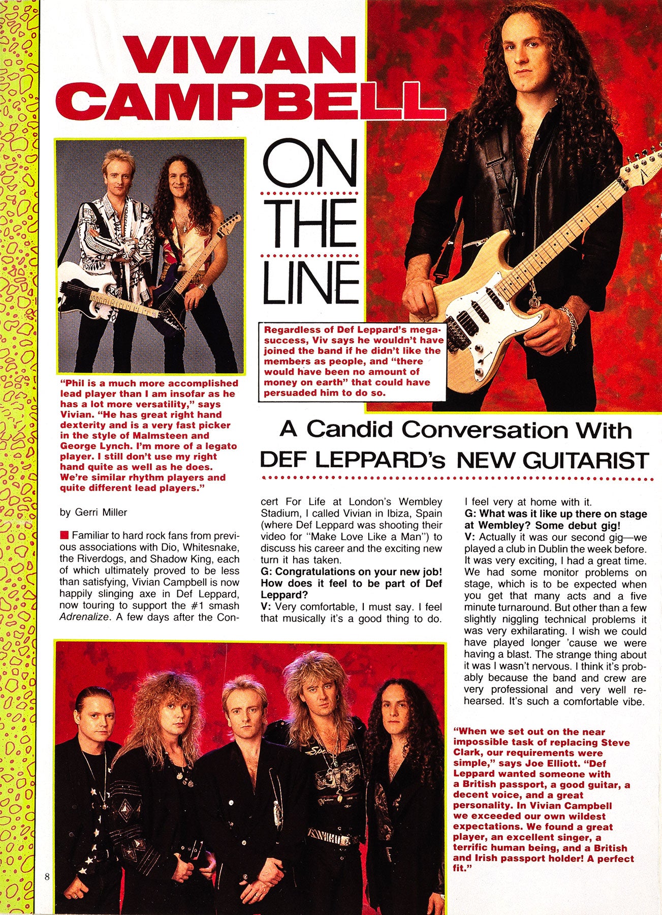 Article clipped from Metal Edge magazine featuring an interview with Viv on his new role as Def Leppard guitarist, 1992. From the Collection of Joe Elliott.
