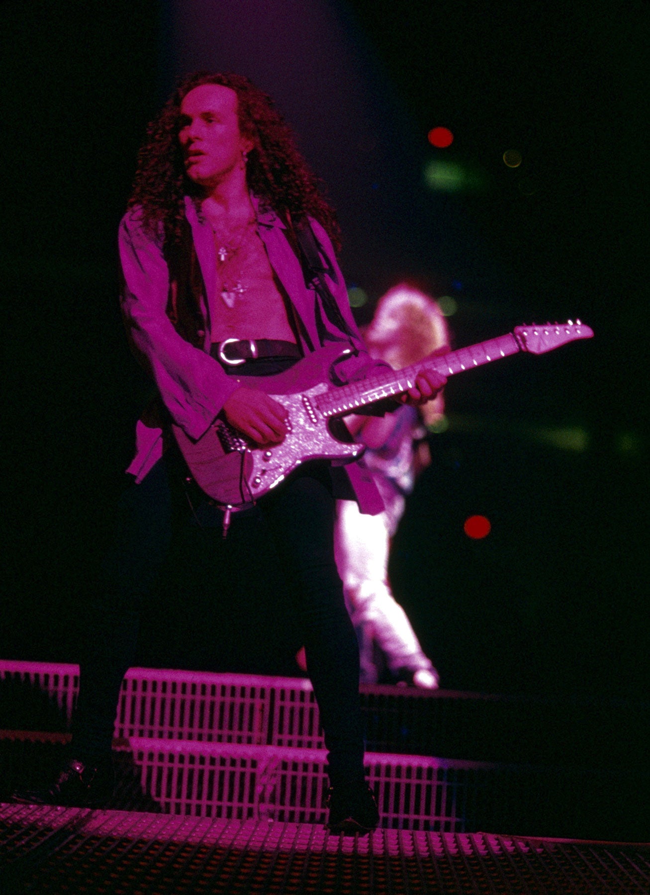 Viv works his magic during the Adrenalize "Seven Day Weekend" Tour, 1992. Los Angeles Daily News reported that the band's work on the tour "...established Def Leppard as one of rock and roll's class acts. The band never once resorted to grandstanding or vulgarity to get fans involved." Photo: Ross Halfin. From the Collection of Def Leppard.