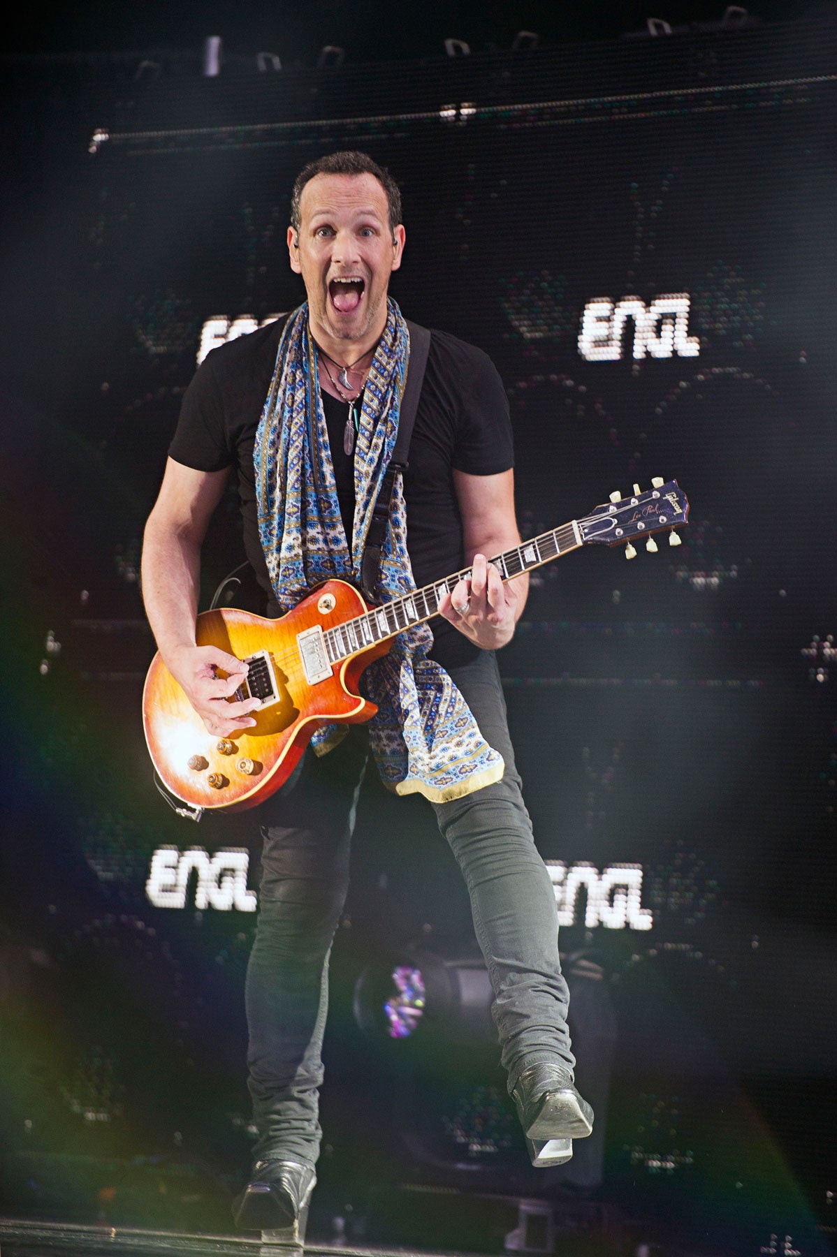 Viv performs with pure joy in front of ENGL 4x12 cabinets loaded with Celestion Vintage 30s, circa 2019. Photo: Ross Halfin. From the Collection of Def Leppard.