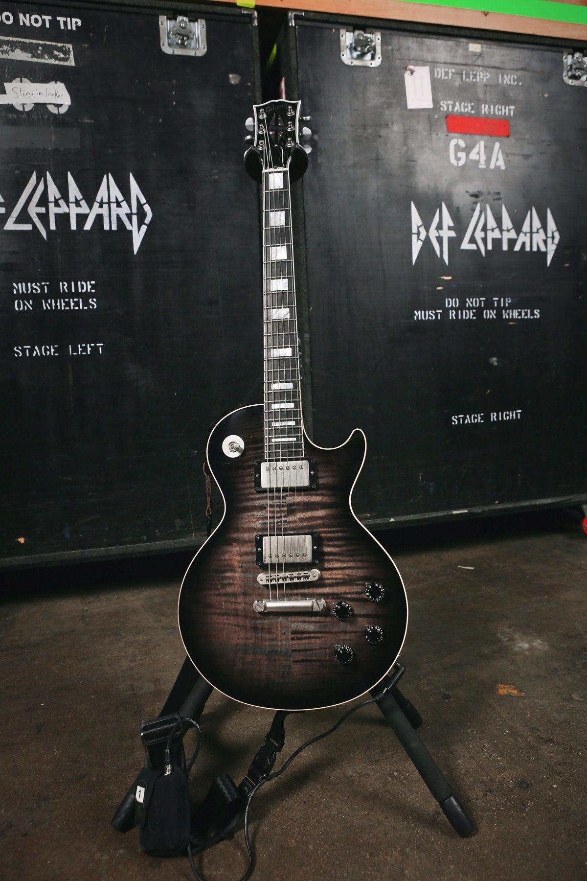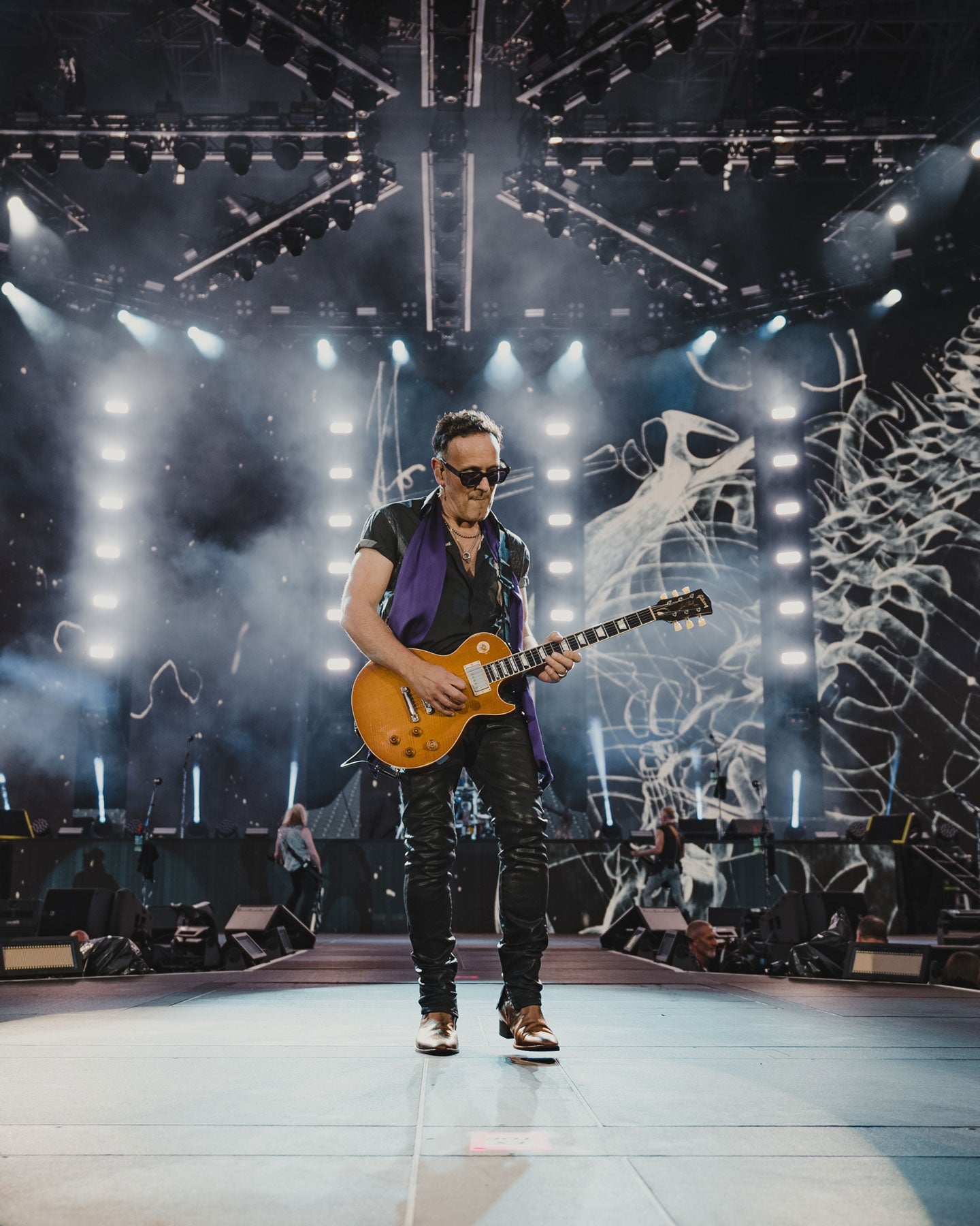 Viv lifts his Gibson up for some fancy finger work in Minneapolis during the 2022 Stadium Tour. Photo: Ryan Sebastyan. From the Collection of Def Leppard.