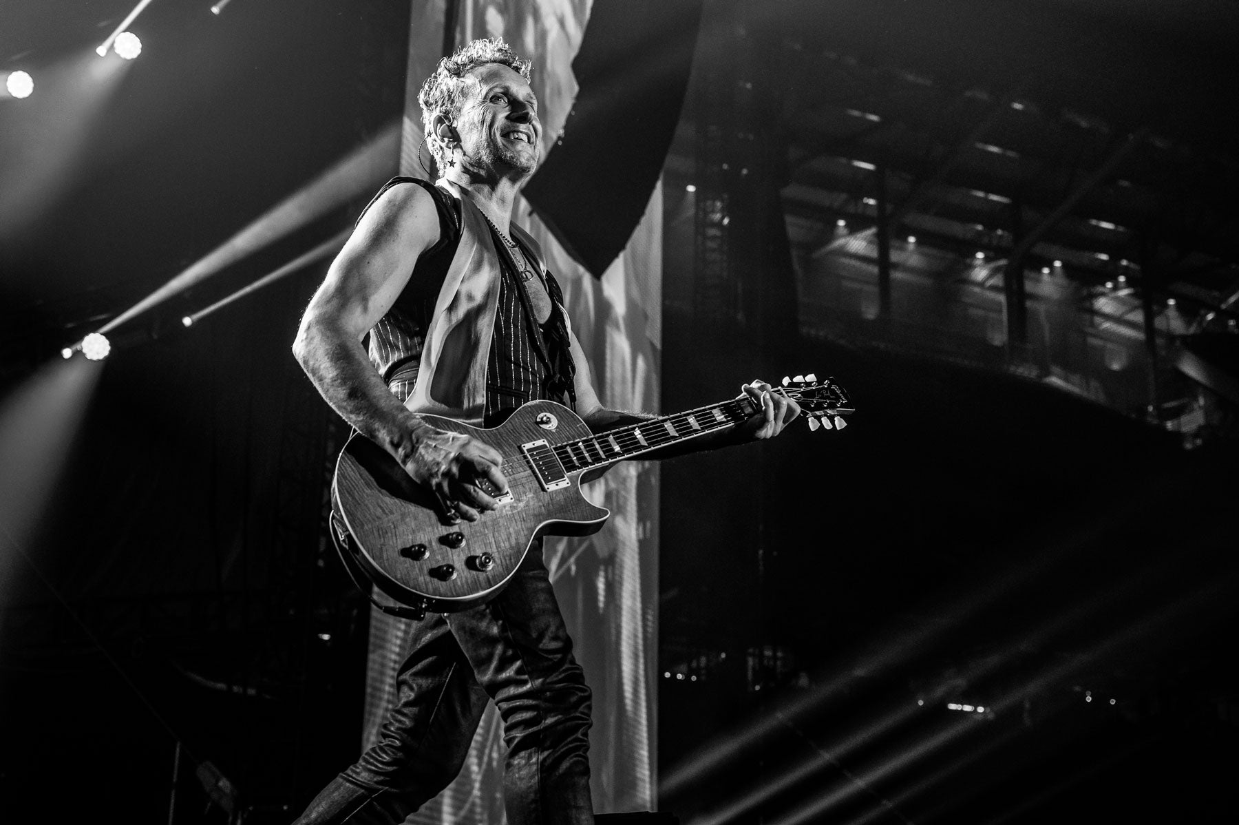 Viv bends the d-string of his Gibson Les Paul at Nissan Stadium in Nashville, 30 June 2022. Photo: Ryan Sebastyan. From the Collection of Def Leppard.