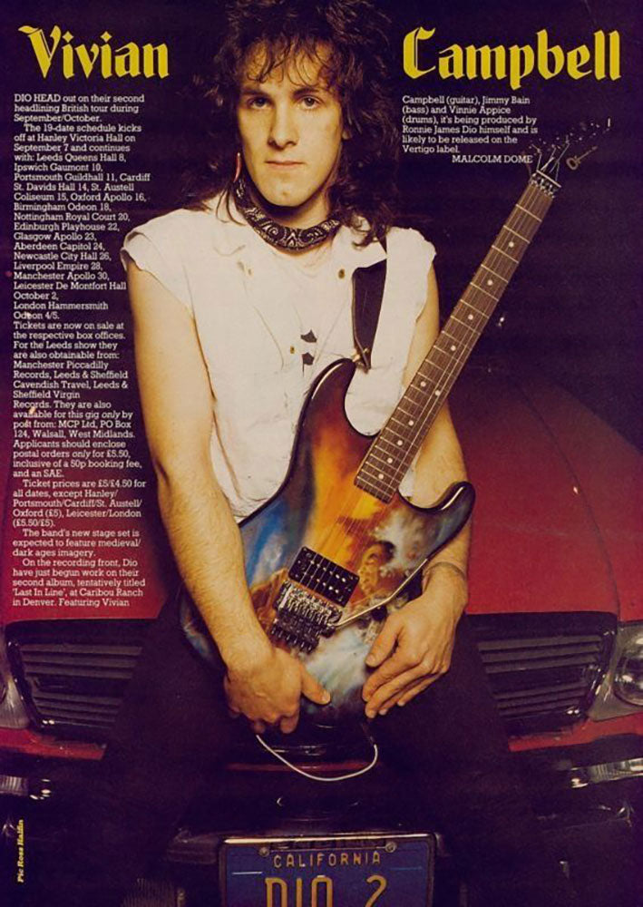Viv is the face of this scoop on Dio's 1984 The Last in Line UK tour. The piece is written by pioneering metal journalist Malcolm Dome and features a photo by Ross Halfin. From the Collection of Def Leppard.